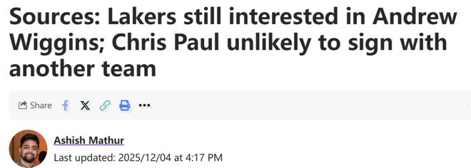 另外,湖人队仍有意通过交易得到热火队小前锋安德鲁-维金斯。